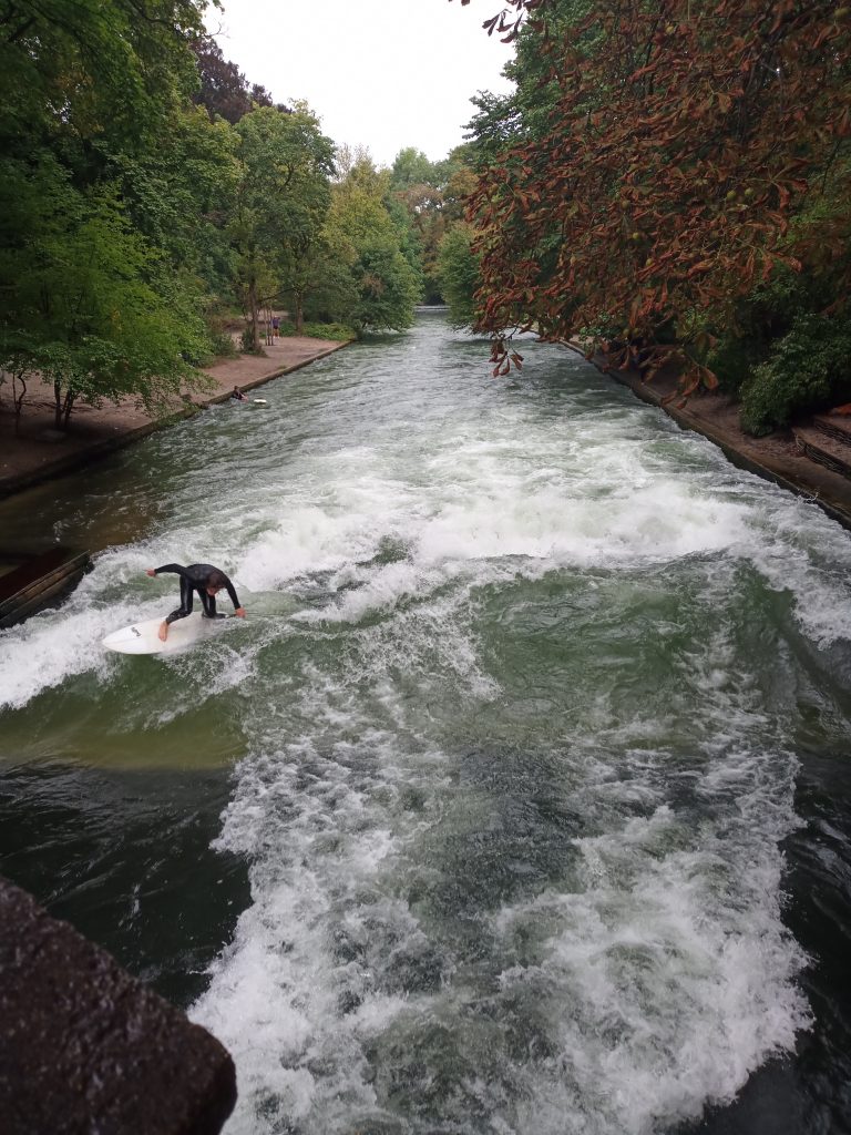 05.09.2025Vierter und letzter Tag in München. Acht Uhr: s. gestern und vorgestern. Die Koffer waren schnell gepackt und um halb zehn ging es los. Mit der U-Bahn bis Lehel, da drehten wir eine Ehrenrunde, weil wir den Weg auf Anhieb nicht fanden. Auch Google Maps war nicht wirklich hilfreich, zum Glück laufen auch noch Menschen rum, die sprechen und uns den Weg zeigen können. Und schon waren wir an der Eisbachwelle und bewunderten die Surfer und Surferinnen bei ihren Kunststücken im Wasser oder zumindest bei den Versuchen. Weiter ging es zu Fuß zum Hofgarten und zur Theatinerkirche. Wir fanden wir  wieder viele schöne Fotomotive Dann besuchten einige Kegelbrüder das Dallmayr, um ein paar Kleinigkeiten für die Lieben zu Hause zu kaufen. Danach fing es dann ganz fürchterlich an zu schütten und teilweise waren wir ganz schön nass. Glockenspiel und Viktualienmarkt ließen wir sausen, stattdessen fanden wir gute Plätze und eine schlagfertige Kellnerin im Ratskeller. Engegen unserer Befürchtungen waren die Preise human und das Essen hervorragend und die Kellnerin hatte ich schon erwähnt. Um halb zwei wurde es dann Zeit, zum Hotel zurückzukehren, der Regen hatte inzwischen auch aufgehört. Der Entsafter wurde noch einmal rege besucht und dann folgte ein letzter Fußmarsch zum Bahnhof. Hier verabschiedeten wir Ingo, der noch einen Tag bleibt und dann nach Garmisch fährt. Wir bestiegen unseren ICE, der pünktlich um 15:09 Uhr den Bahnhof verließ. Schon bald hatten wir uns ein paar Minuten Verspätung eingefangen. Eigentlich hätten wir in Kassel-Wilhelmshöhe eine Übergangszeit von gut dreißig Minuten gehabt, dieses Polster schrumpfte auf ganze sieben Minuten und wir hatten noch einen weitern Weg vor uns. Nochmal mussten in aller Eile Treppen rauf- und runtergehastet werden, aber um 20.02 Uhr saßen wir im RRX, um 20.03 Uhr ging es los und um viertel vor neuen waren wir in Soest. Ein halbes Jahr hatten wir uns riesig auf diesen Ausflug gefreut, leider ist er jetzt schon wieder vorbei. Aber es soll doch wohl noch nicht unser letzter gewesen sein. Wir bedanken und beim Kegelvater, dem Schatzmeister, bei Werner und allen Kegelbrüdern, die alle jeder für sich zu diesem hervorragenden Ausflug beigetragen haben.